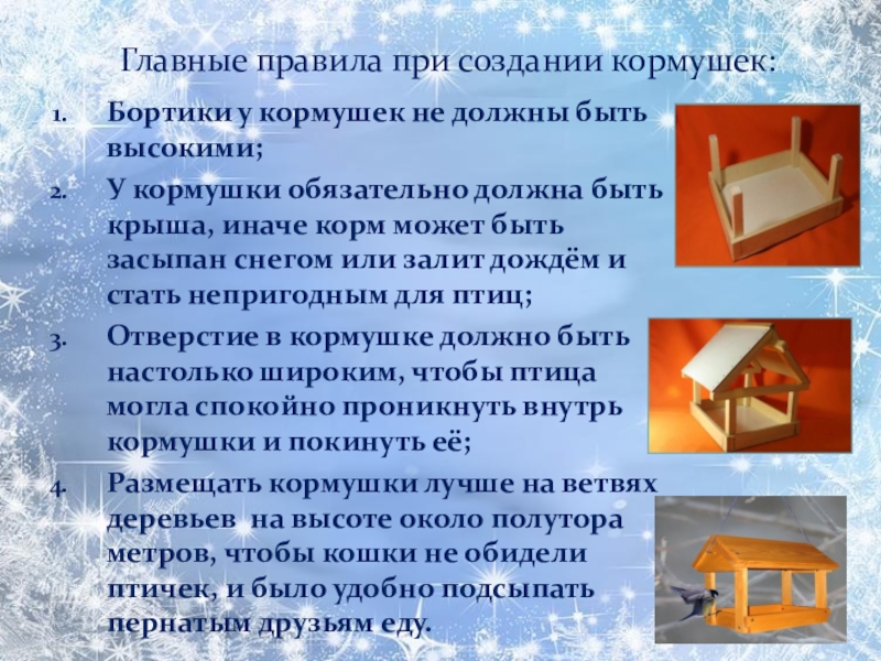 Главные правила при создании кормушек:
