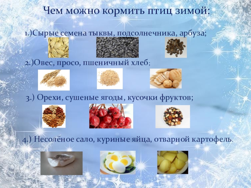 4.) Несолёное сало, куриные яйца, отварной картофель..