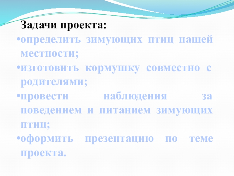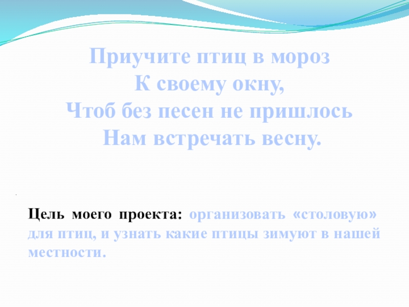 Цель моего проекта: организовать «столовую» для птиц, и узнать какие птицы зимуют в нашей местности.