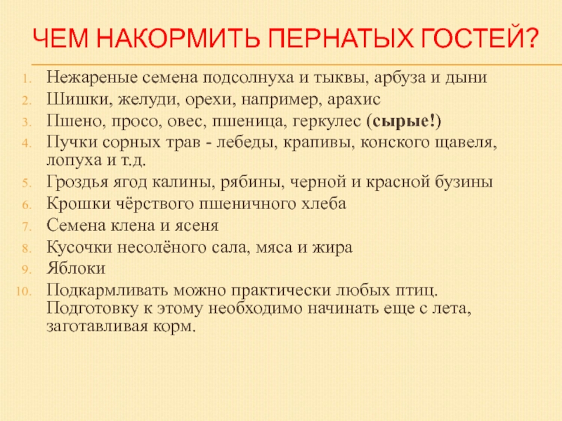 Слайд 8ЧЕМ НАКОРМИТЬ ПЕРНАТЫХ ГОСТЕЙ?