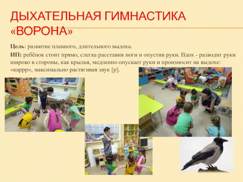 Слайд 28ДЫХАТЕЛЬНАЯ ГИМНАСТИКА «ВОРОНА»