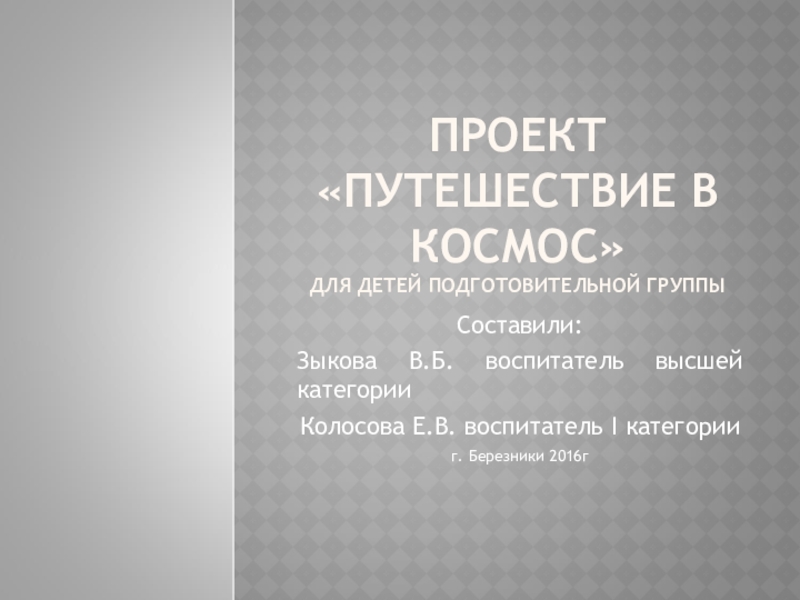 Слайд 1ПРОЕКТ «ПУТЕШЕСТВИЕ В КОСМОС»