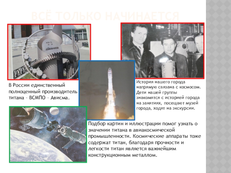 Подбор картин и иллюстрации помог узнать о значении титана в авиакосмической промышленности. Космические аппараты тоже содержат титан, благодаря прочности и легкости титан является важнейшим конструкционным металлом.