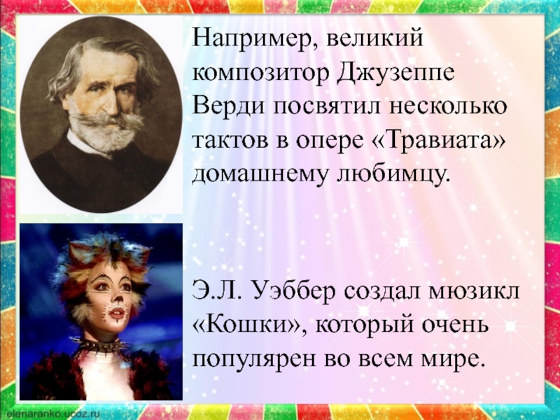 Э.Л. Уэббер создал мюзикл «Кошки», который очень популярен во всем мире.