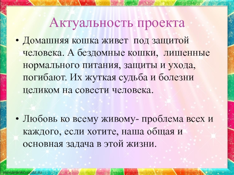 Любовь ко всему живому- проблема всех и каждого, если хотите, наша общая и основная задача в этой жизни.