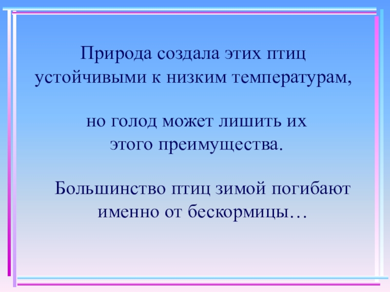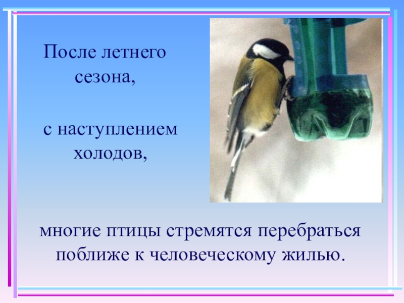 но ни как не голуби и вороны (для которых корма достаточно и на улице)!