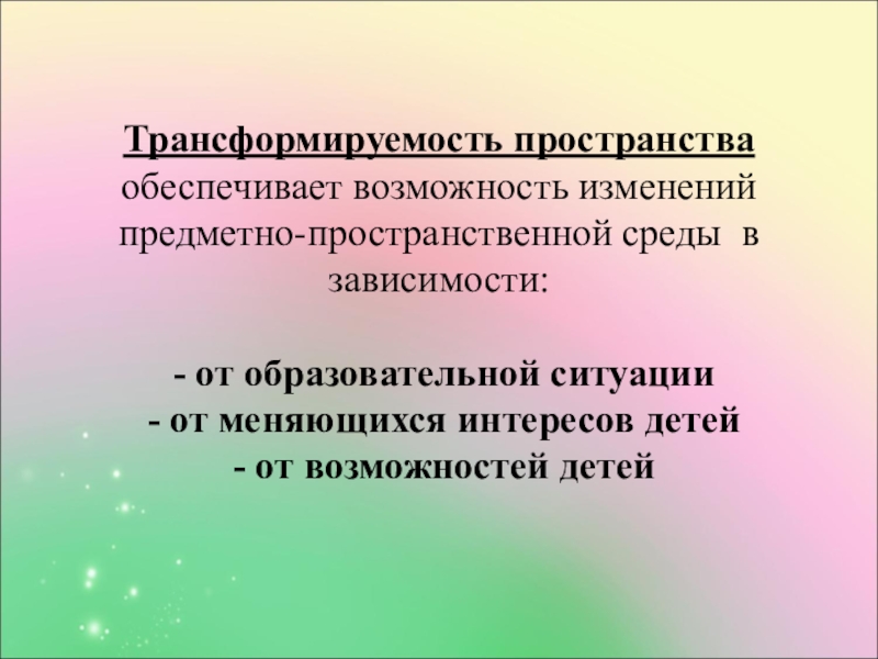 Трансформируемость пространства обеспечивает возможность изменений предметно-пространственной среды в зависимости: