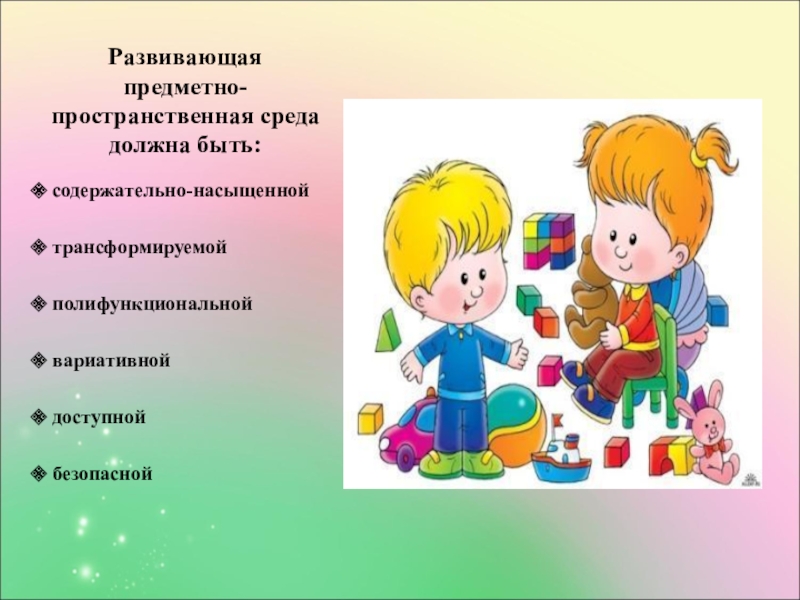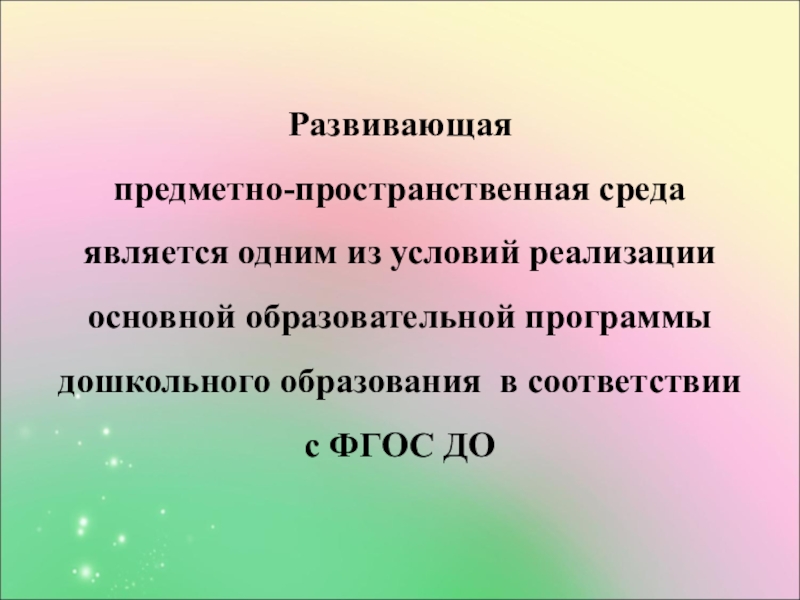 Слайд 1Развивающая предметно-пространственная образовательная среда в условиях введения ФГОС ДО
