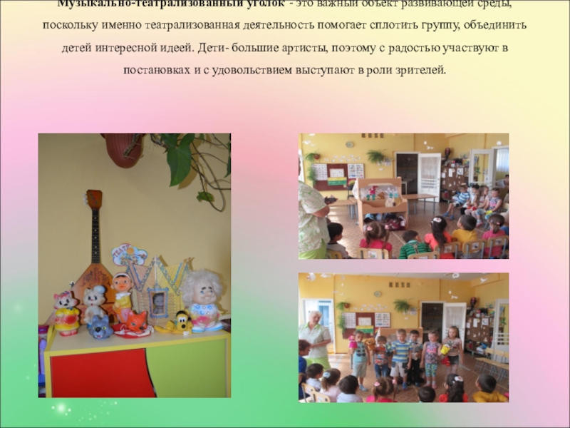 Музыкально-театрализованный уголок - это важный объект развивающей среды, поскольку именно театрализованная деятельность