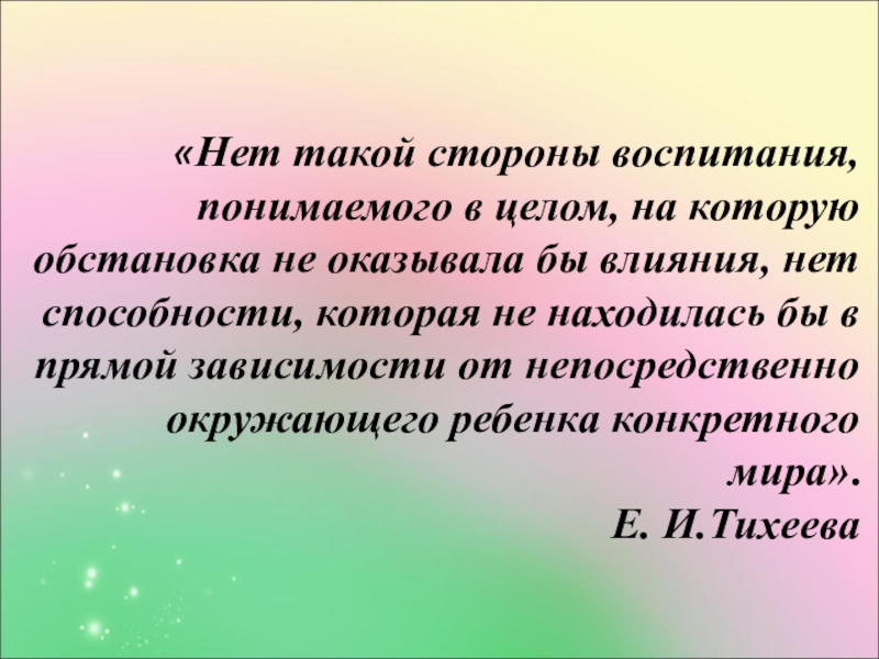 Слайд 2«Нет такой стороны воспитания, понимаемого в целом, на которую обстановка не