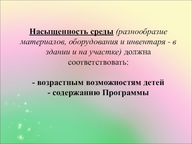 Насыщенность среды (разнообразие материалов, оборудования и инвентаря - в здании и