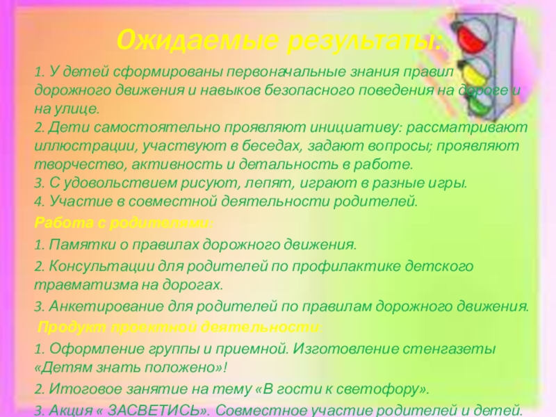 1. У детей сформированы первоначальные знания правил дорожного движения и
