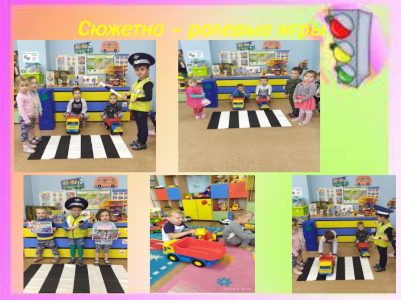 7. Сюжетно–ролевая игра «Шофёры», «Поезд», «Водители и пешеходы», «Транспорт», игры с макетом; «На дорогах города», «Гаражи и автомобили», «Прогулка по городу».