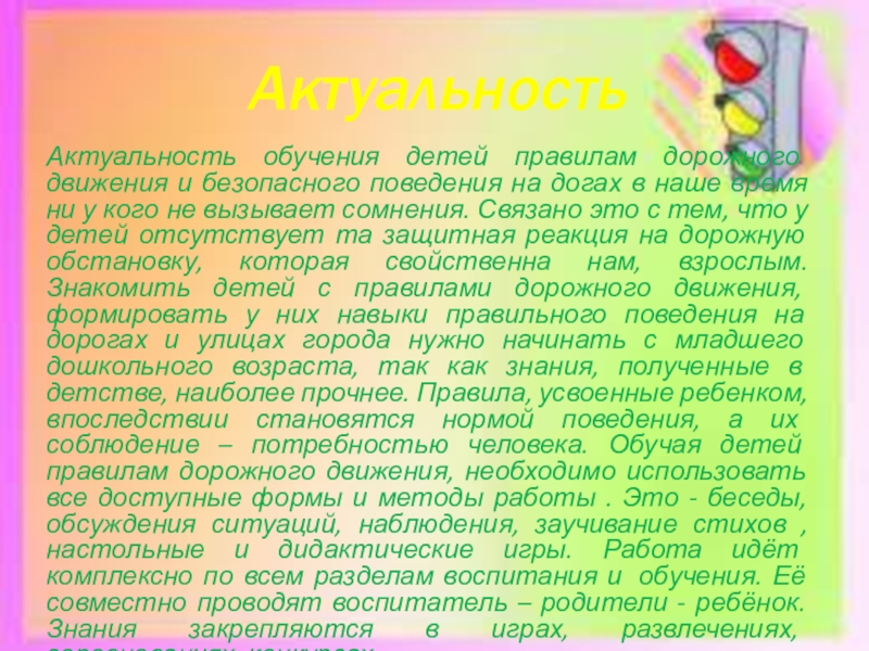 Актуальность обучения детей правилам дорожного движения и безопасного поведения на