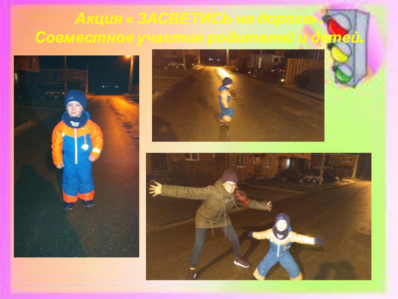 Слайд 17Акция « ЗАСВЕТИСЬ на дороге». Совместное участие родителей и детей.