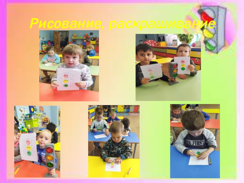 обводка трафаретов – машины, раскрашивание «Машины», «Светофор» и т.п.