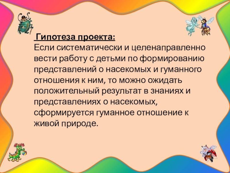 формированию представлений о насекомых и гуманного отношения к ним, то можно ожидать положительный результат в знаниях и представлениях о насекомых, сформируется гуманное отношение к живой природе.