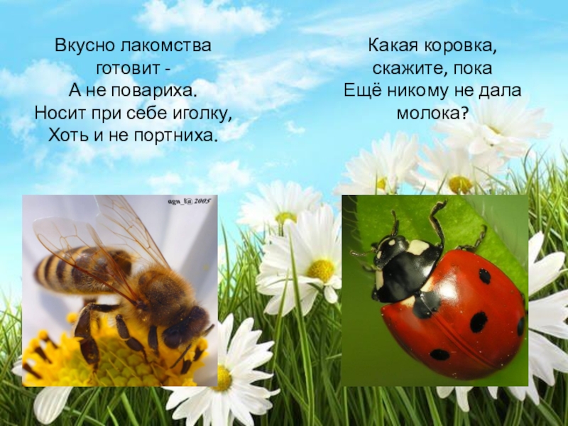 -формирование представлений о насекомых; расширить знания детей об особенностях