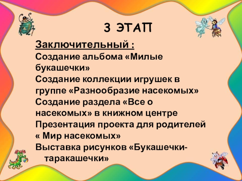 внешнего вида и жизненного цикла насекомых, сформировать у детей чувства сопереживания к живой природе.