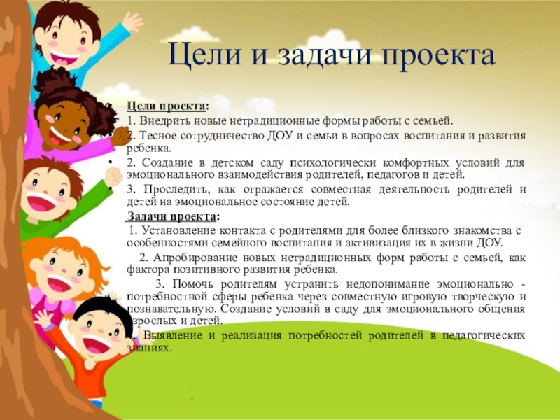 2. Создание в детском саду психологически комфортных условий для эмоционального взаимодействия родителей, педагогов и детей.