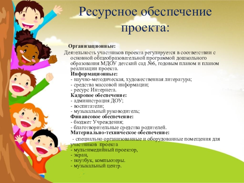 соответствии с основной общеобразовательной программой дошкольного образования МДОУ детский сад №6, годовым планом и планом реализации проекта.