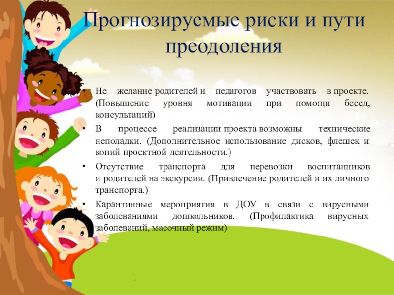 Не желание родителей и педагогов участвовать в проекте. (Повышение уровня