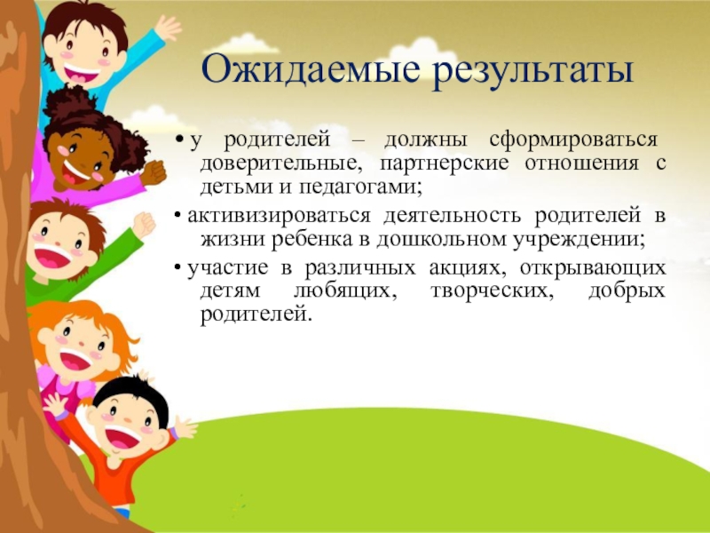 • у родителей – должны сформироваться доверительные, партнерские отношения с детьми