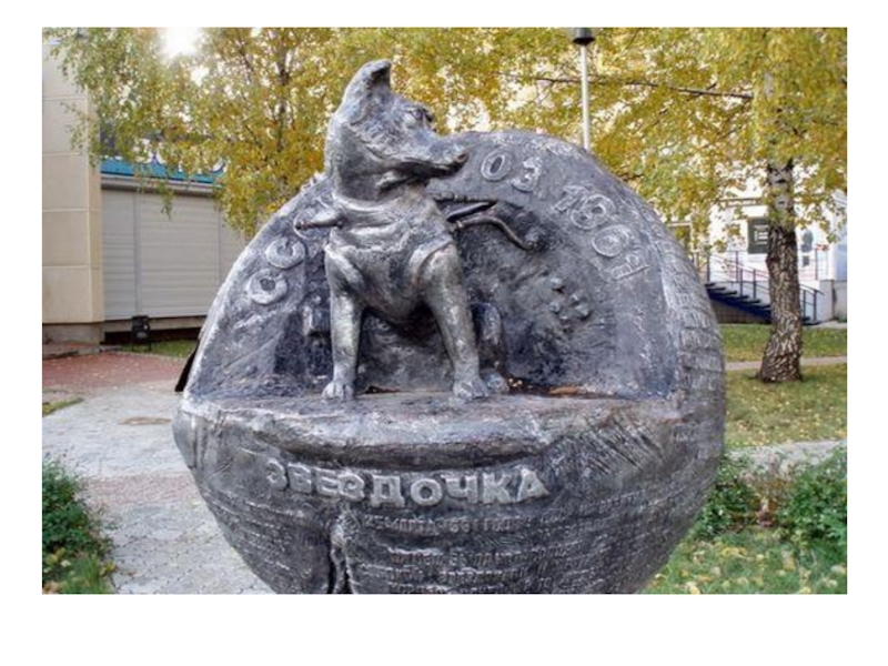 собаке-космонавту Звездочке. На скульптуре высотой около полуметра и изготовленной из металла выгравирована история собаки-космонавта.