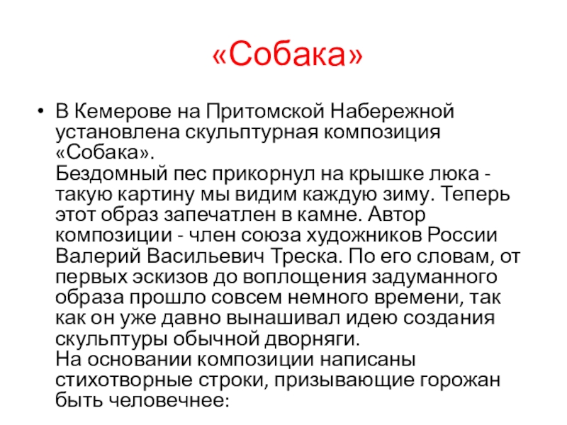 Слайд 6Памятник дворнягам — "Сочувствие".