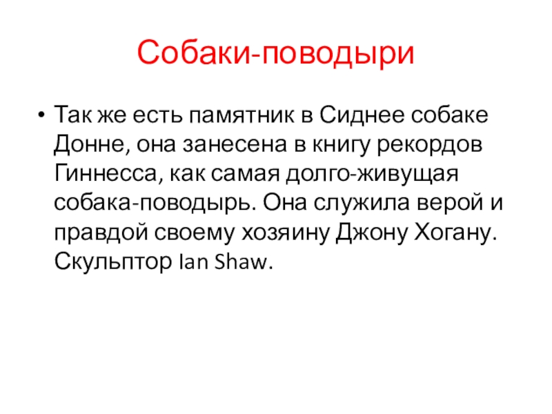 Так же есть памятник в Сиднее собаке Донне, она занесена в