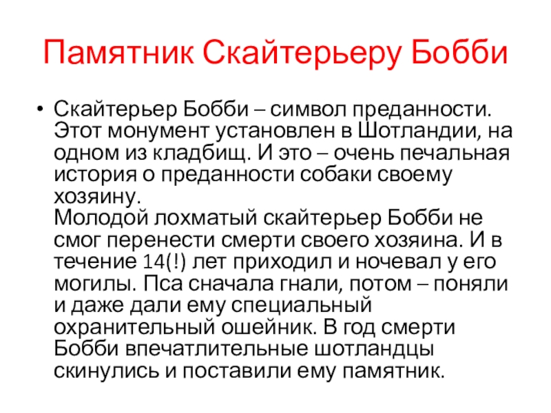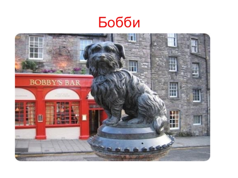 Слайд 26Памятник Скайтерьеру Бобби