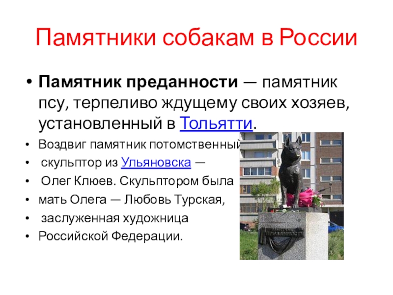 Слайд 5Памятники собакам в России