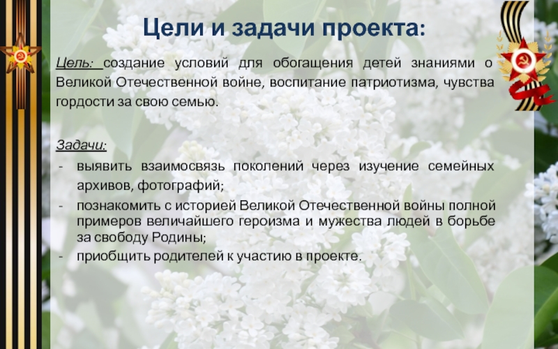 Великой Отечественной войне, воспитание патриотизма, чувства гордости за свою семью.