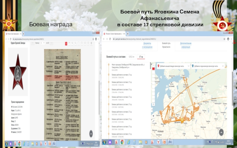 Слайд 8Боевой путь Яговкина Семена Афанасьевича