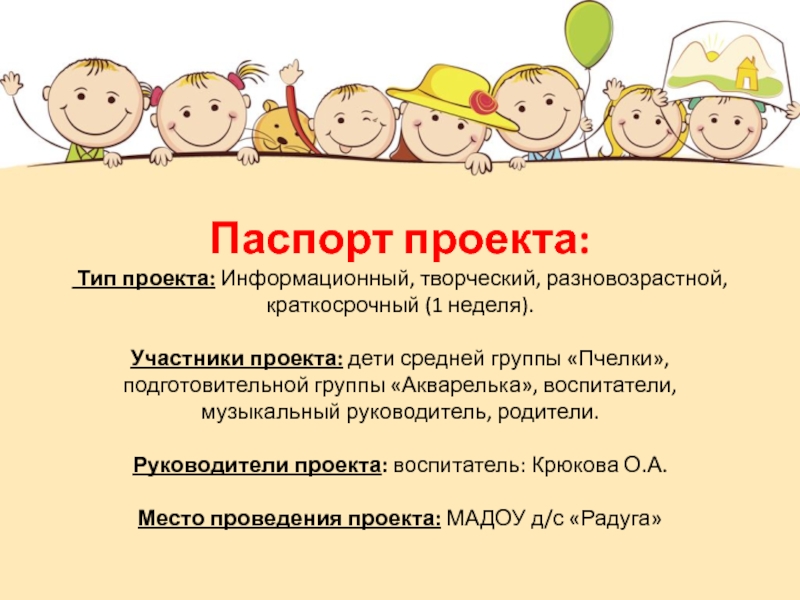 Тип проекта: Информационный, творческий, разновозрастной, краткосрочный (1 неделя).