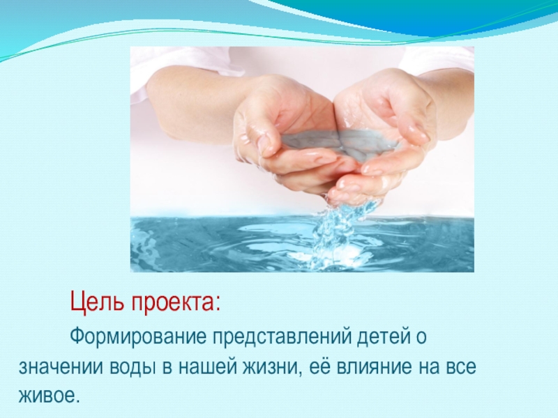 Цель проекта: Формирование представлений детей о значении воды в нашей жизни, её влияние на все живое.