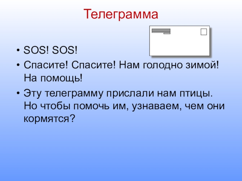 телеграмму прислали нам птицы. Но чтобы помочь им, узнаваем, чем они кормятся?