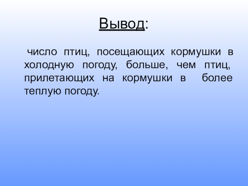 Число птиц, прилетающих на кормушки в холодную погоду, больше, чем птиц, прилетающих на кормушки в более теплую погоду.
