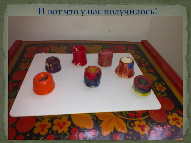 Слайд 38Работая над созданием – солонок, им приходилось работать с глиной на