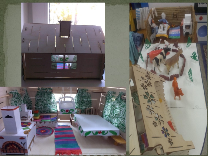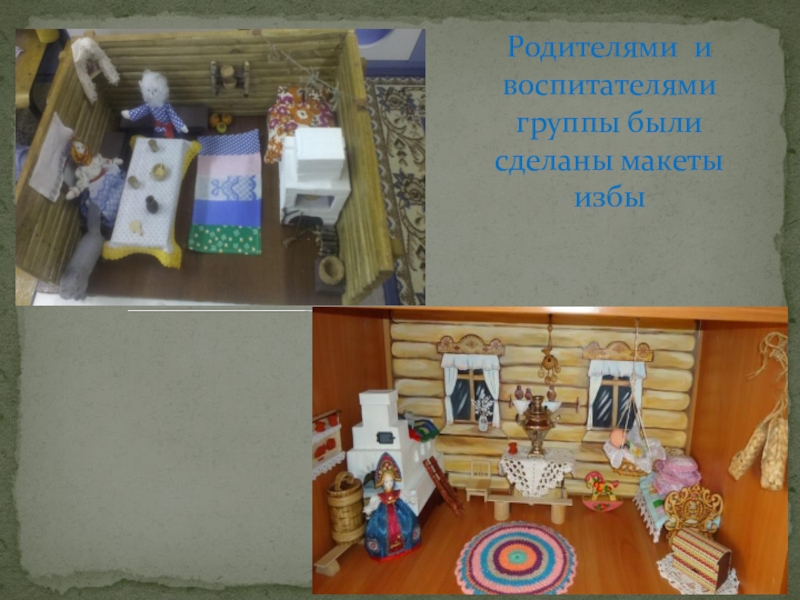Слайд 16Родителями и воспитателями группы были сделаны макеты избы