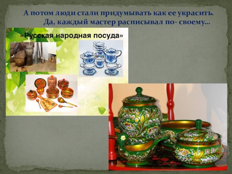 Слайд 26Раньше посуда была простая – без особой красоты.
