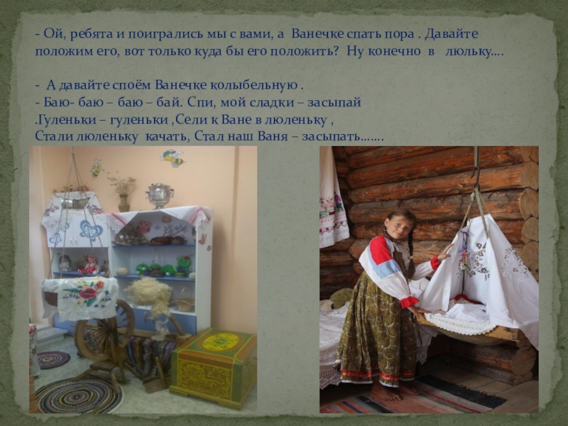 Стали люленьку качать, Стал наш Ваня – засыпать…….