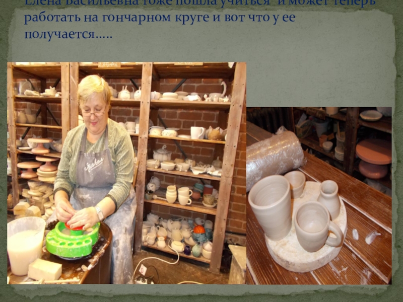 Слайд 25Елена Васильевна тоже пошла учиться и может теперь работать на гончарном