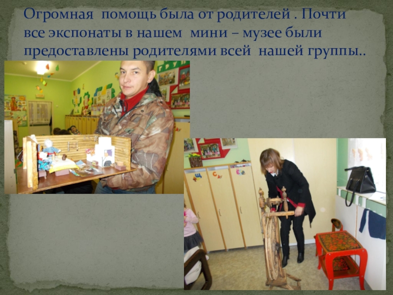 Слайд 42Огромная помощь была от родителей . Почти все экспонаты в нашем