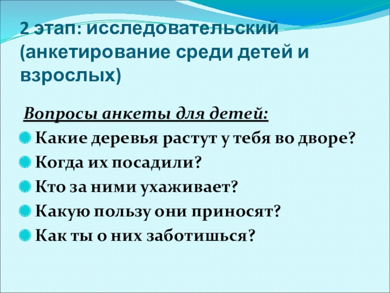 Слайд 122 этап: исследовательский (анкетирование среди детей и взрослых)