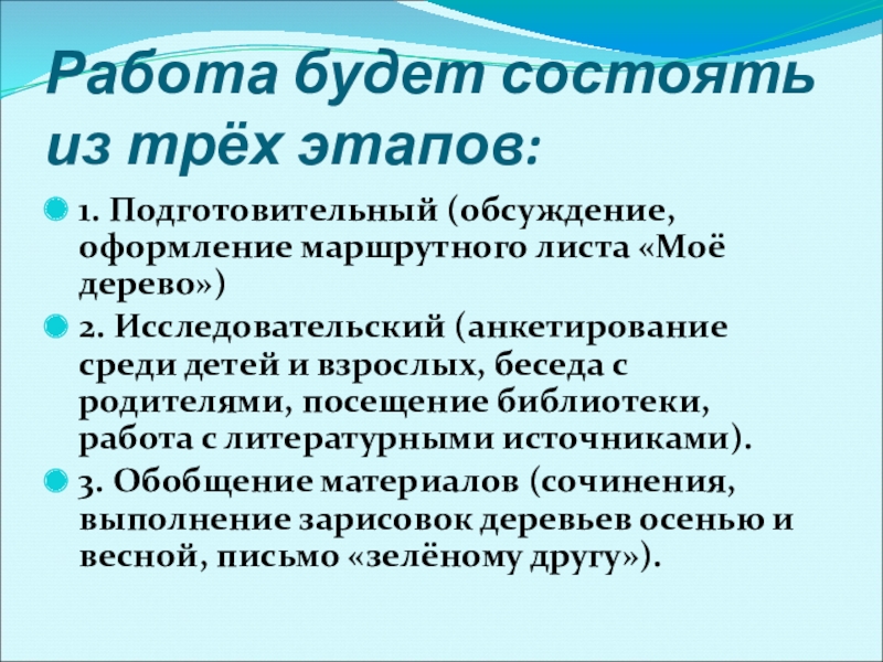 1. Подготовительный (обсуждение, оформление маршрутного листа