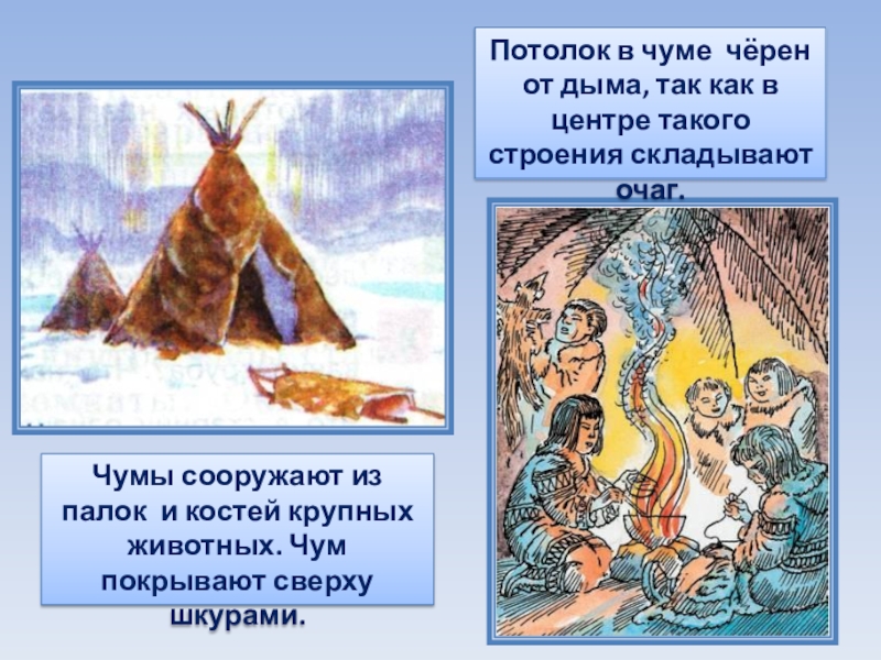 Потолок в чуме чёрен от дыма, так как в центре такого строения складывают очаг.