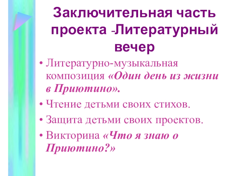 Это сайт презентаций, где можно хранить и обмениваться своими презентациями, докладами, проектами, шаблонами в формате PowerPoint с другими пользователями. Мы помогаем школьникам, студентам, учителям, преподавателям хранить и обмениваться учебными материалами.