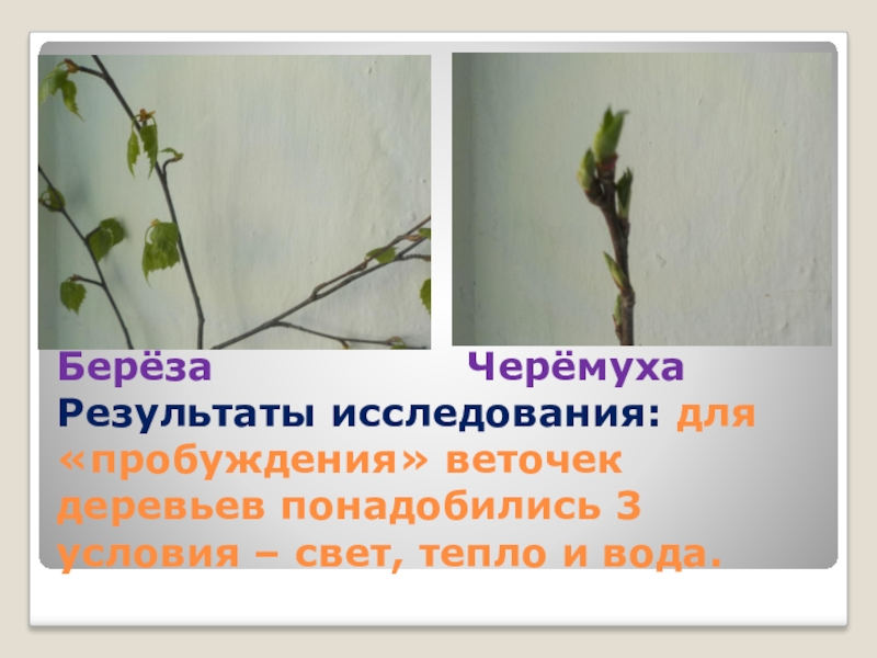 Берёза          Черёмуха Результаты исследования: для «пробуждения» веточек деревьев