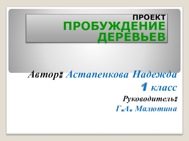 Автор: Астапенкова Надежда 1 класс Руководитель:  Г.А. МалютинаПРОЕКТПРОБУЖДЕНИЕ ДЕРЕВЬЕВ